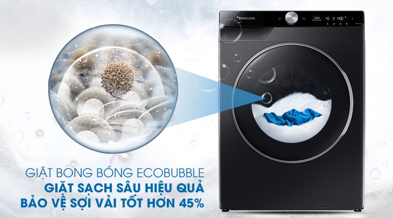 Công nghệ EcoBubble sẽ đánh tan nước giặt/bột giặt thành những bọt bong bóng siêu mịn, thẩm thấu nhanh vào sợi vải gấp 40 lần, có khả năng đánh bật vết bẩn tốt hơn 24% và loại bỏ cặn bám trên quần áo.